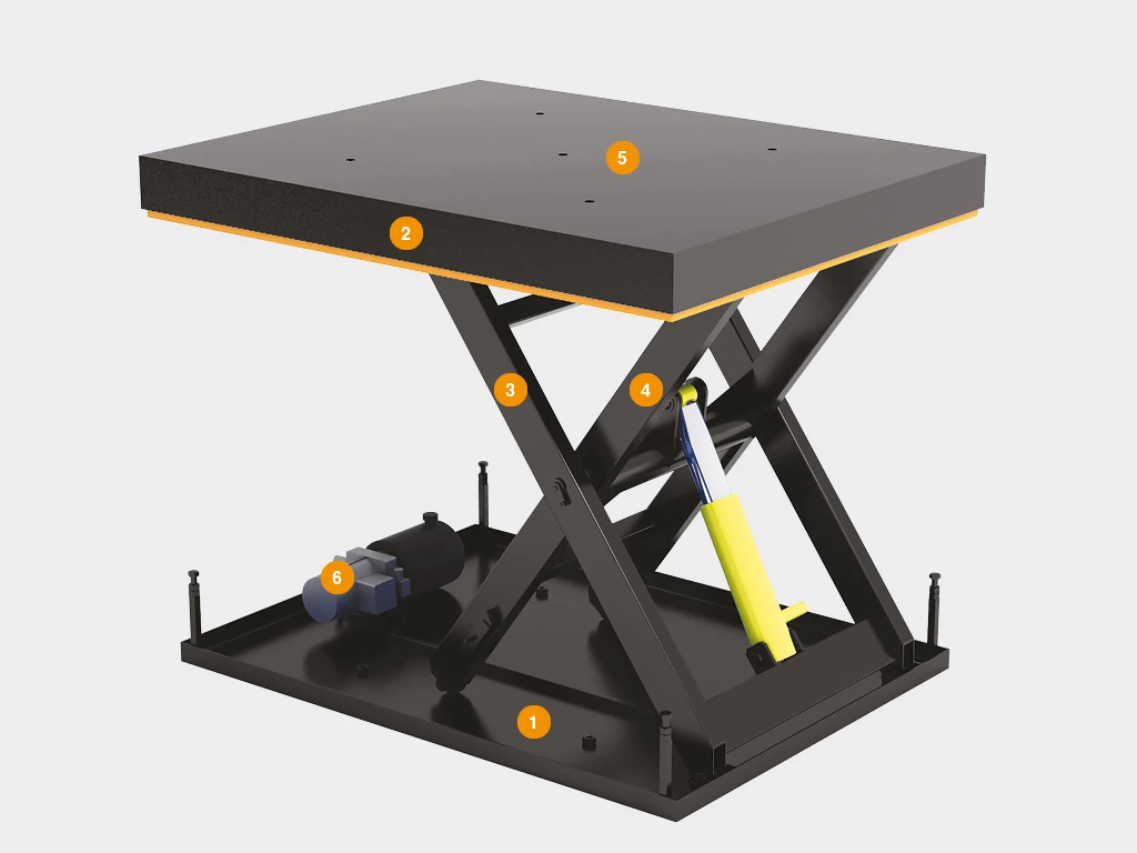 Прочная рама позволяет использовать подъемный стол такого типа на протяжении длительного периода времени.